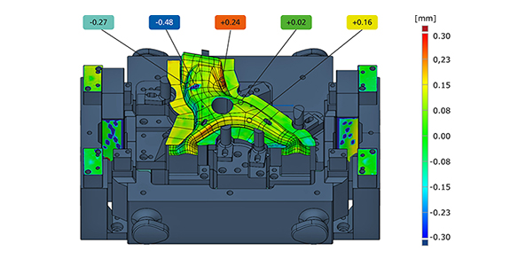 A folyamat során a törést, sérülést, kopást, hiányt lézerhegesztővel vagy claddingel felépítjük, majd folyamatos 3D szkenneléssel szerszámkészítőink kézzel, modellszerűre munkálják vissza a felületet. A javítás így gyors és nem igényel rendkívül költséges logisztikát, illetőleg a folyamat pedig teljesen követhető és dokumentálható a GOM szkennereknek köszönhetően. A javításról minden esetben jegyzőkönyvet adunk át a Megrendelő részére, melyben grafikusan kimutatható a modellszerűség. Amennyiben nem áll rendelkezésre műszaki dokumentáció a javítandó darabról, szintén vállaljuk a modell elkészítését. (reverse engineering).